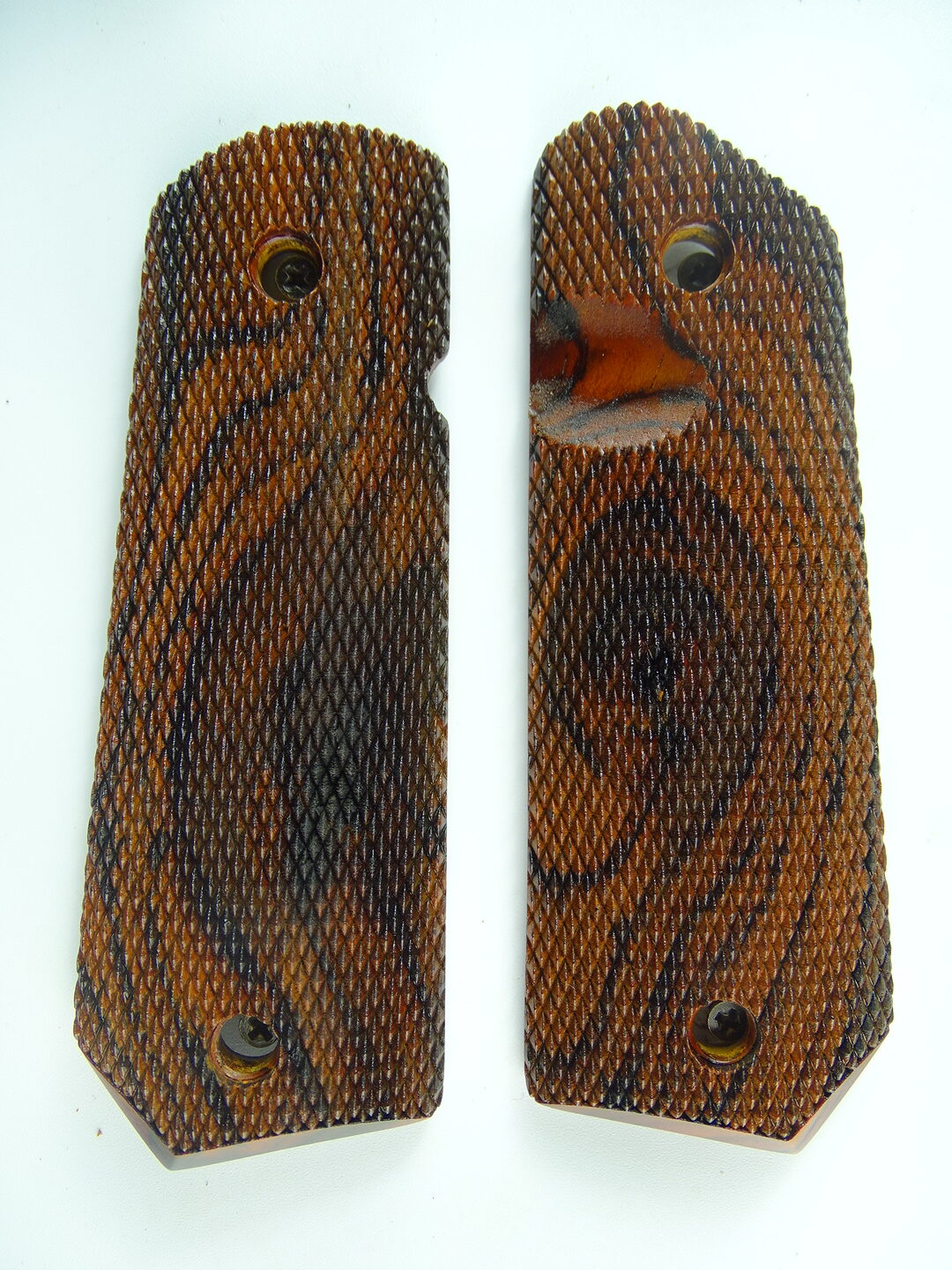 1911 AAA cocobolo wood grips, checkered, Bobtail, with Mag Release thumb notch