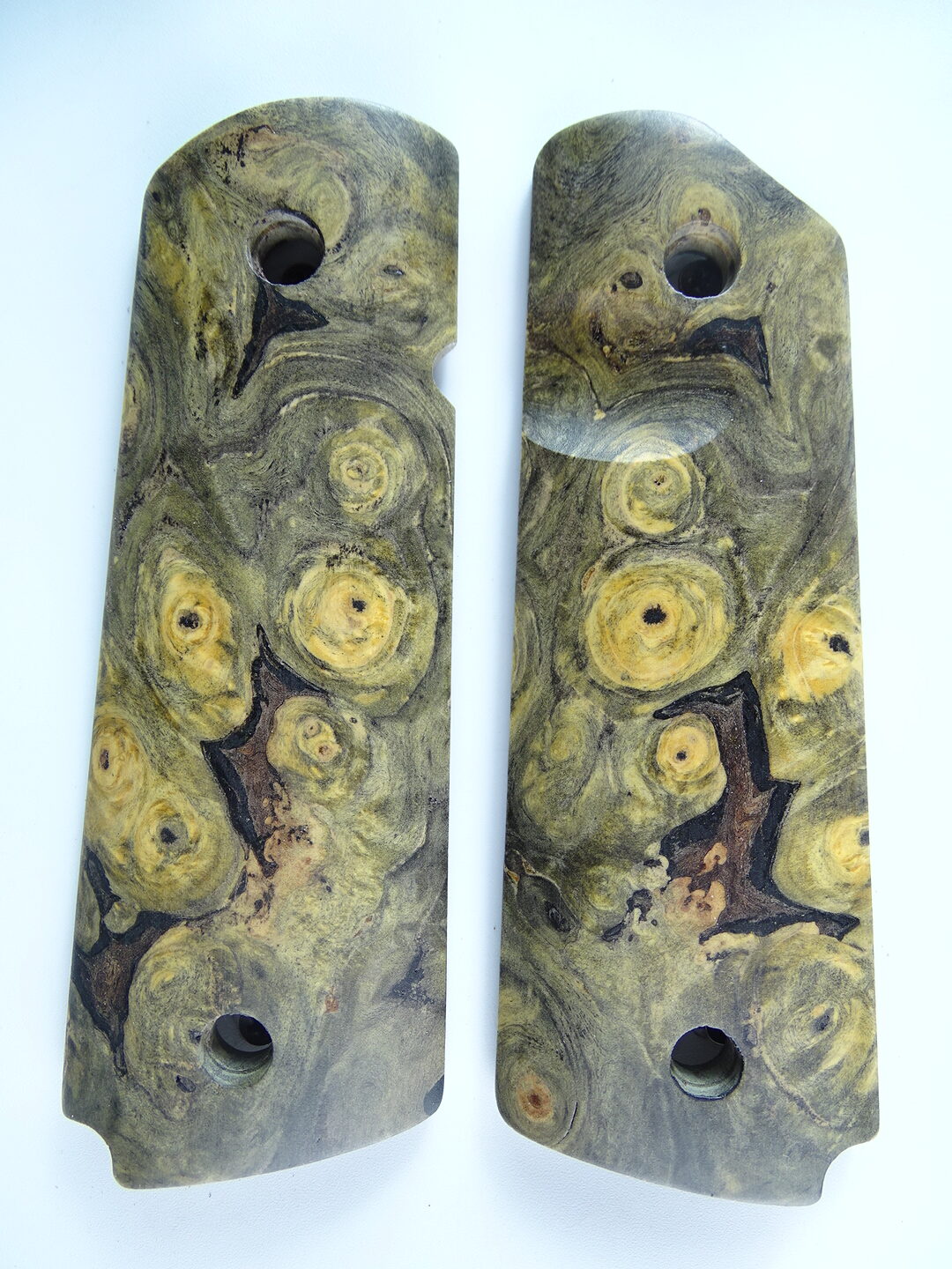 1911 stabilized Buckeye Burl wood grips, smooth
